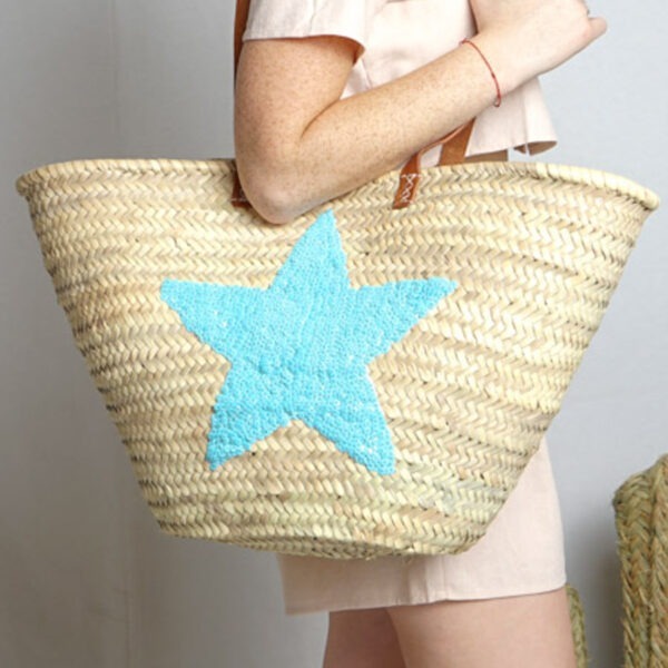 Capazo de Playa Estrella Lentejuelas – Asa de Piel