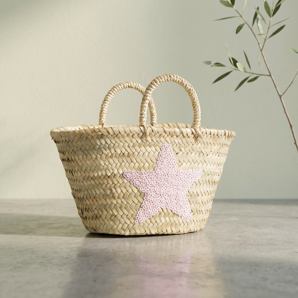 Capazo de Playa Mediano Estrella con Lentejuelas