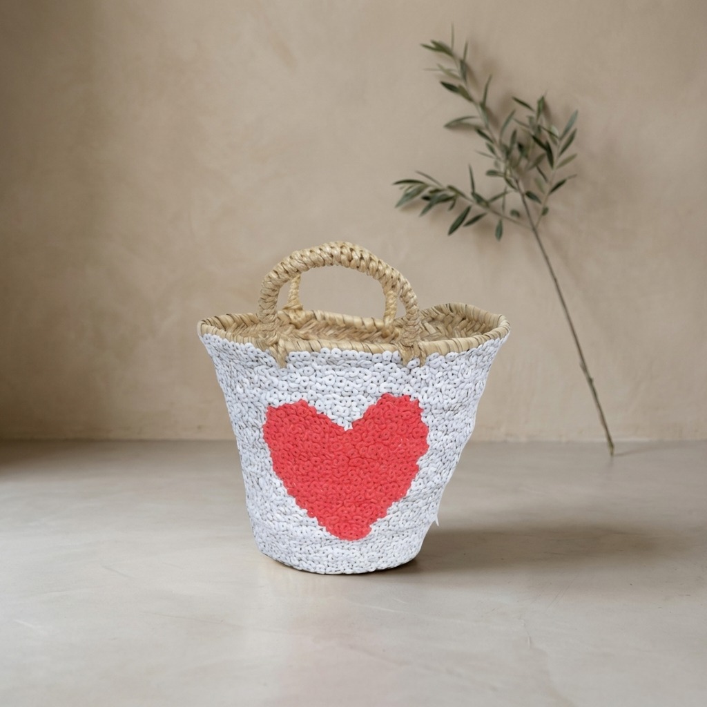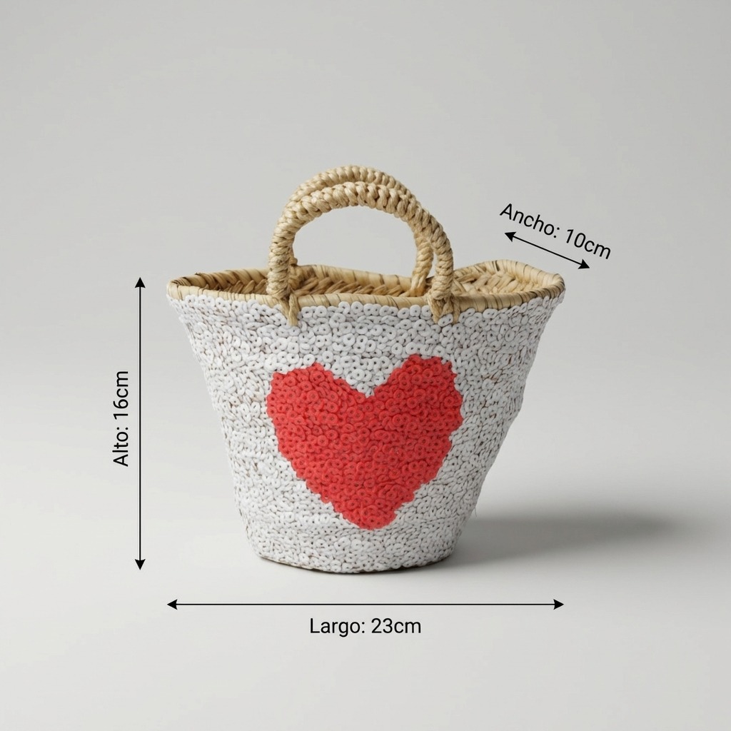 Capazo de Palma Pequeño Blanco Corazón Rojo
