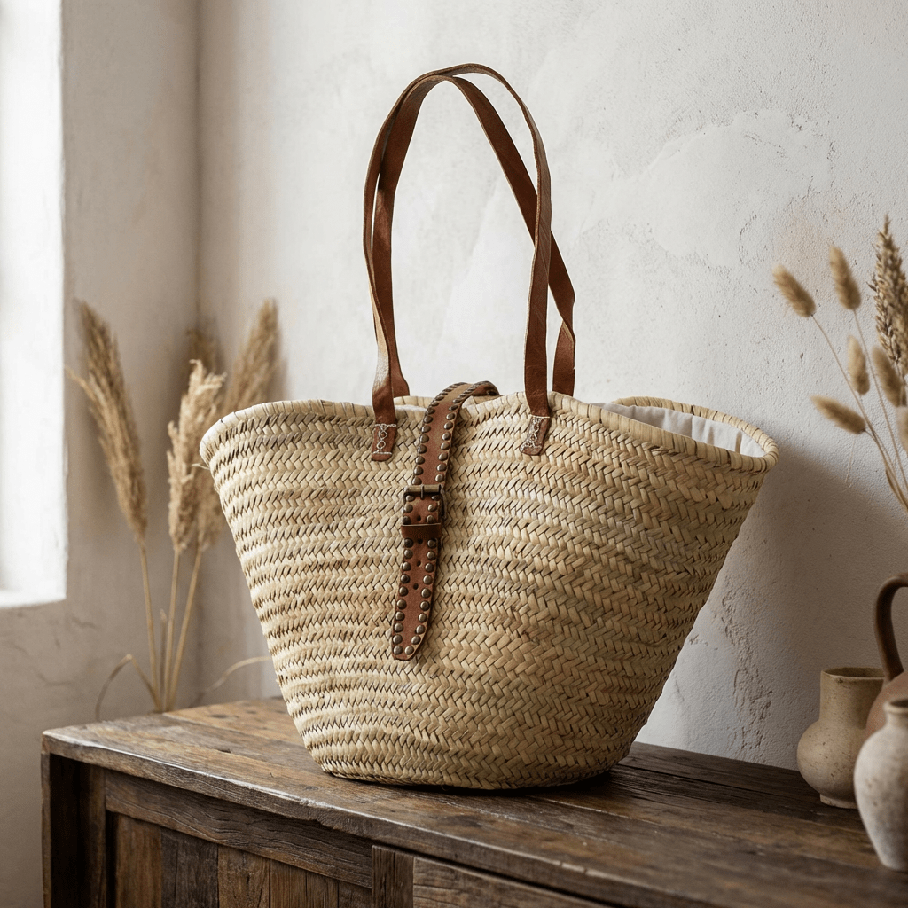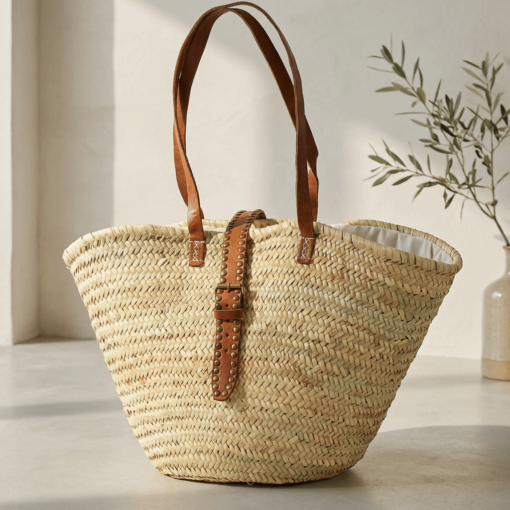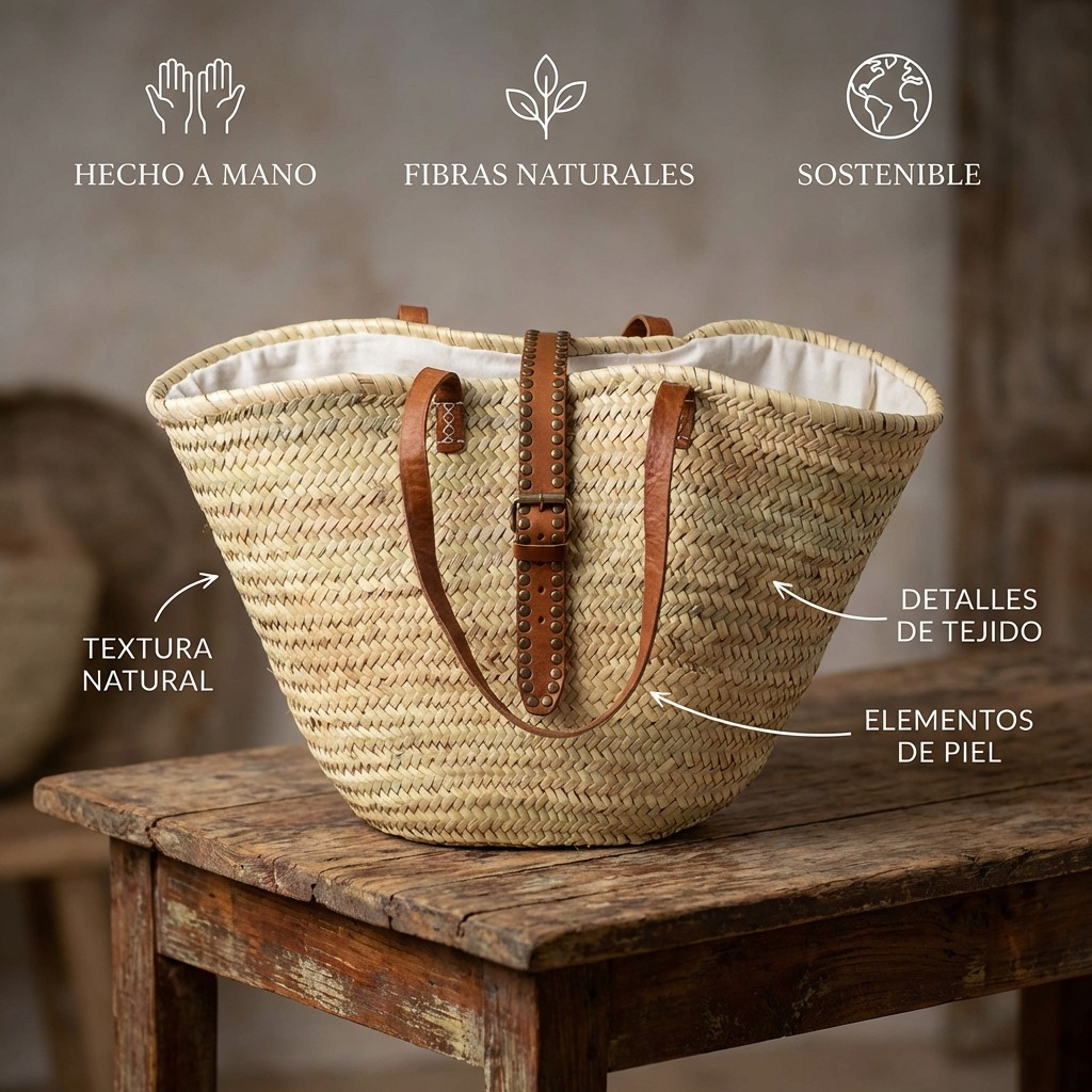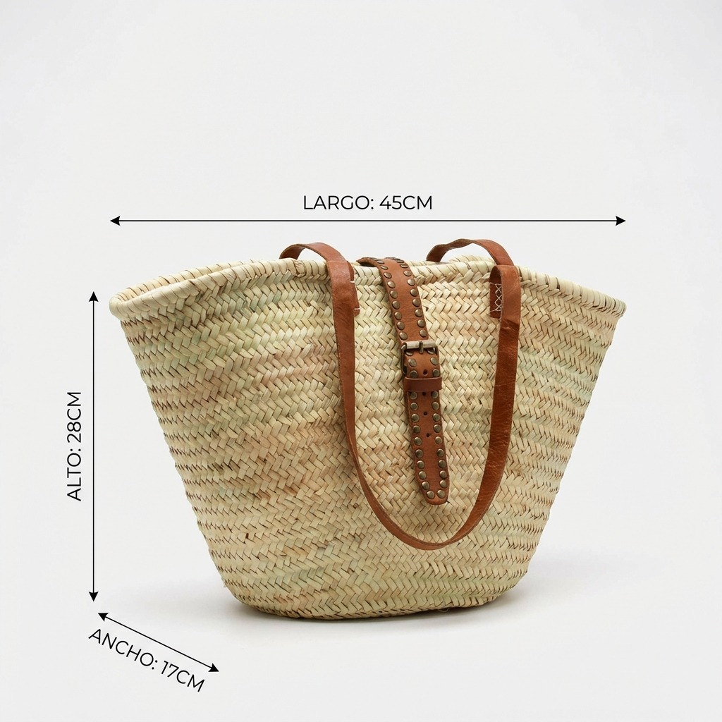 ¿Buscas el bolso perfecto para tus días de playa? El Capazo de Palma Leticia con Cierre de Tachas es ese accesorio que combina estilo bohemio y funcionalidad 🌴 Elaborado artesanalmente en Marruecos con palma natural y detalles en piel auténtica, incluye asas resistentes y un cierre seguro con hebilla y tira de tachuelas que protege tus pertenencias ☀️ Su interior con cierre de tela blanca añade un toque elegante. Al ser 100% artesanal, cada pieza es única y puede presentar ligeras variaciones en tamaño, tono de piel o pequeñas imperfecciones que realzan su autenticidad.