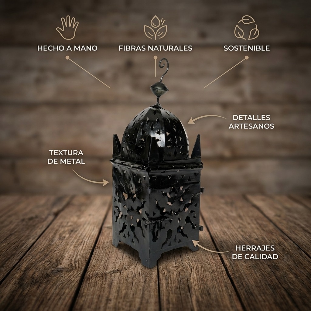 ¿Buscas ese toque mágico para tu hogar? Este Farolillo Árabe de Metal es justo lo que necesitas ✨ Fabricado artesanalmente en Marruecos, cada pieza es única y llena de encanto. Su diseño tradicional crea juegos de luz espectaculares que transformarán cualquier rincón en un espacio con alma. Disponible en tres tamaños para que elijas el que mejor se adapte a tu decoración 🏡 Al estar realizado de forma artesana, puede variar ligeramente el tamaño y presentar pequeñas imperfecciones que lo hacen auténtico e irrepetible.