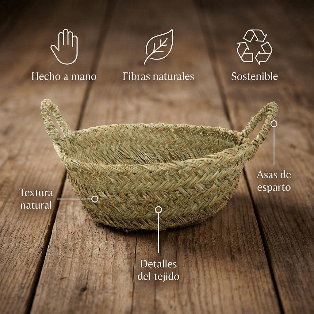 ¿Buscas un toque natural y auténtico para tu hogar? Este Cesto de Esparto con Asas es justo lo que necesitas 🌿 Elaborado 100% a mano por artesanos expertos con esparto crudo, un material noble que conserva toda su belleza natural. Su forma redonda y sus prácticas asas lo convierten en el aliado perfecto para mil usos: como frutero, panera, cesta para huevos o simplemente como elemento decorativo que enamora. Cada pieza es única, con pequeñas variaciones artesanales que le dan ese encanto especial ✨ ¡Llévate un pedacito de tradición a casa!