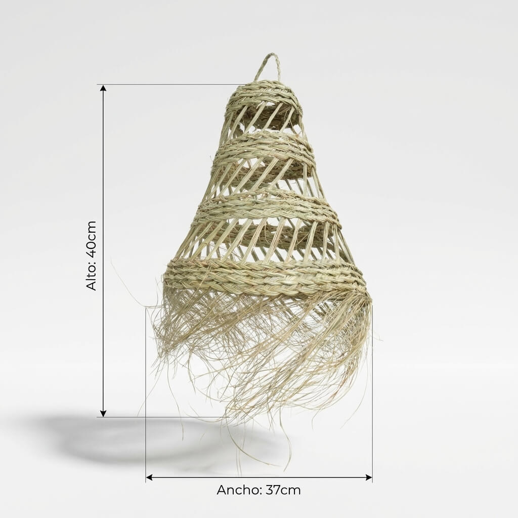 Dale un toque natural y auténtico a tu hogar con esta lámpara grande de esparto colgante en forma de campana 🌿 Fabricada 100% artesanalmente con esparto ecológico, biodegradable y reciclable, cada pieza es única y especial. Su diseño cónico con flecos aporta ese aire bohemio y mediterráneo que tanto buscas ☀️ Perfecta para crear ambientes cálidos en salones, comedores o terrazas. Al ser artesanal, pueden existir pequeñas variaciones que la hacen aún más exclusiva.