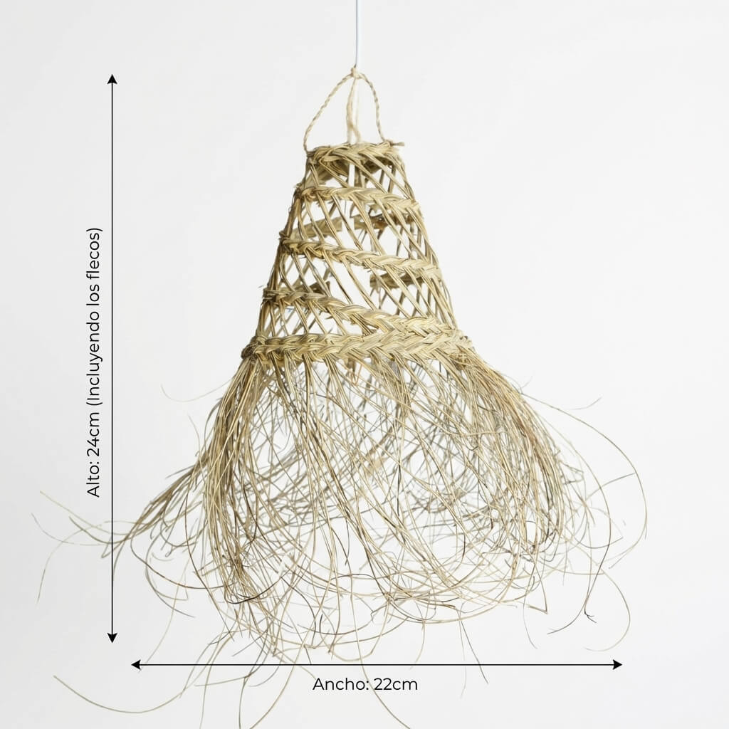 Dale un toque natural y acogedor a tu hogar con esta Lámpara Pequeña de Esparto Colgante 🌿 Fabricada de forma 100% artesanal en España, cada pieza es única y especial. Su bonita forma cónica con flecos aporta ese aire bohemio y mediterráneo que tanto buscas. Perfecta para espacios pequeños donde quieras crear ambientes cálidos ✨ Material ecológico, biodegradable y reciclable. Al ser artesana, puede presentar ligeras variaciones que la hacen aún más especial. No incluye sistema eléctrico ni bombilla.