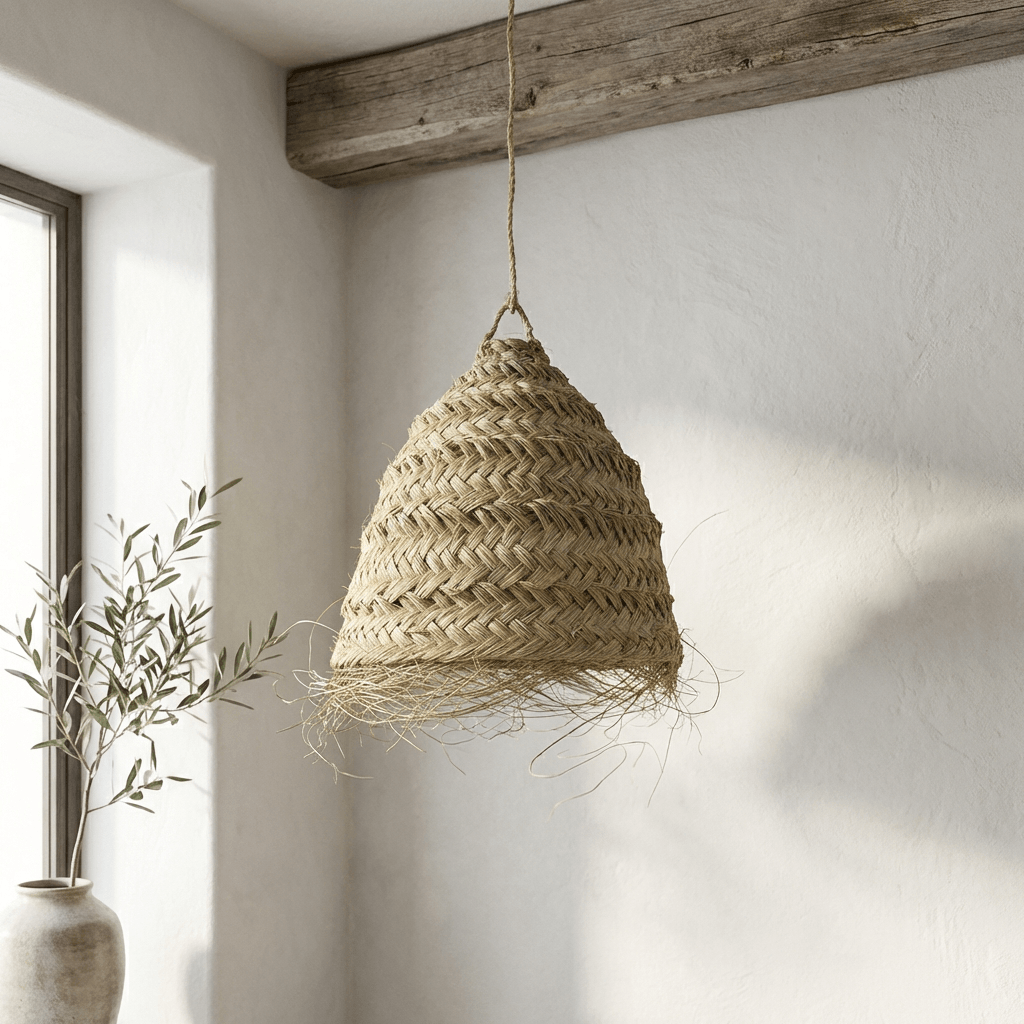 Dale un toque único a tu hogar con esta preciosa lámpara de esparto hecha a mano 🌿 Fabricada con esparto 100% ecológico, biodegradable y reciclable, esta pantalla de forma cónica con flecos aporta ese aire natural y mediterráneo que tanto buscas. Cada pieza es única gracias a su fabricación artesanal✨ Perfecta para crear ambientes cálidos y acogedores en cualquier rincón. ⚠️ No incluye sistema eléctrico ni bombilla. Al estar hecha a mano, puede presentar ligeras variaciones en medidas y acabados que la hacen aún más especial.