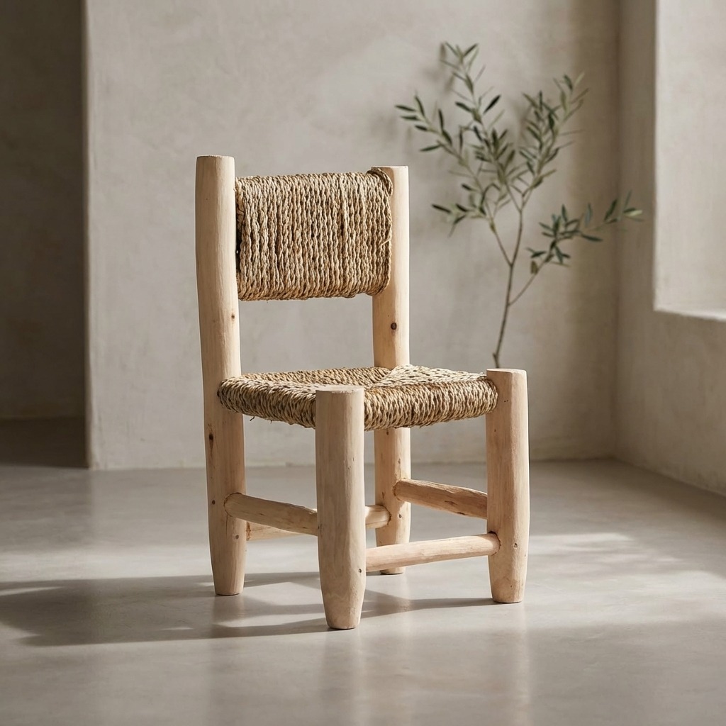 ¿Buscas ese toque rústico y auténtico para tu hogar? Esta silla de madera y esparto es justo lo que necesitas 😊 Fabricada a mano por artesanos marroquíes, cada pieza es única e irrepetible. Su tamaño compacto la hace perfecta como asiento auxiliar, decoración o incluso como soporte para plantas. El asiento de esparto natural aporta esa calidez que tanto nos gusta, mientras que la estructura de madera garantiza resistencia y durabilidad. Dale a tu rincón favorito ese aire mediterráneo que enamora ✨